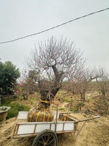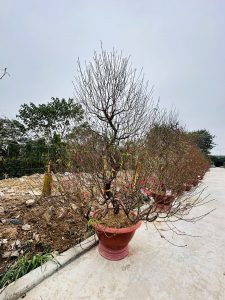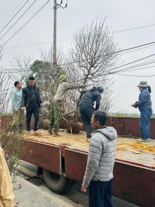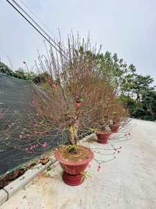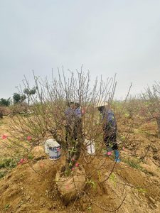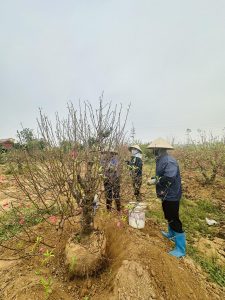 Những ngày giáp tết, đội ngũ Tiến Đức tất bật đánh đào, chuyển lên chậu, chỉnh thế và chăm sóc kỹ lưỡng để mỗi gốc đào đến tay khách đều đạt chuẩn đẹp – bền – nở đúng dịp.