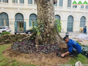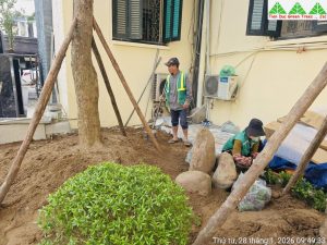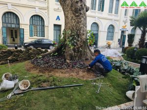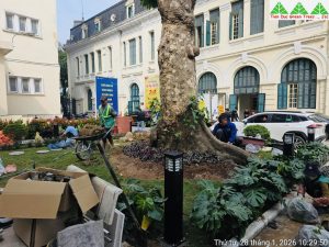 Các hạng mục cảnh quan được thực hiện đồng bộ, từ chỉnh trang mảng xanh, bổ sung cây hoa trang trí theo mùa đến cải tạo không gian tổng thể, đảm bảo hài hòa giữa thẩm mỹ, công năng và bản sắc kiến trúc hiện hữu. Với kinh nghiệm thi công cảnh quan chuyên nghiệp, Cây Xanh Tiến Đức chú trọng từng chi tiết kỹ thuật, lựa chọn chủng loại cây phù hợp, thi công đúng tiến độ và đảm bảo chất lượng, góp phần tạo nên không gian xanh sạch đẹp, trang trọng, sẵn sàng đón Tết trong không khí tươi mới và tràn đầy sinh khí.